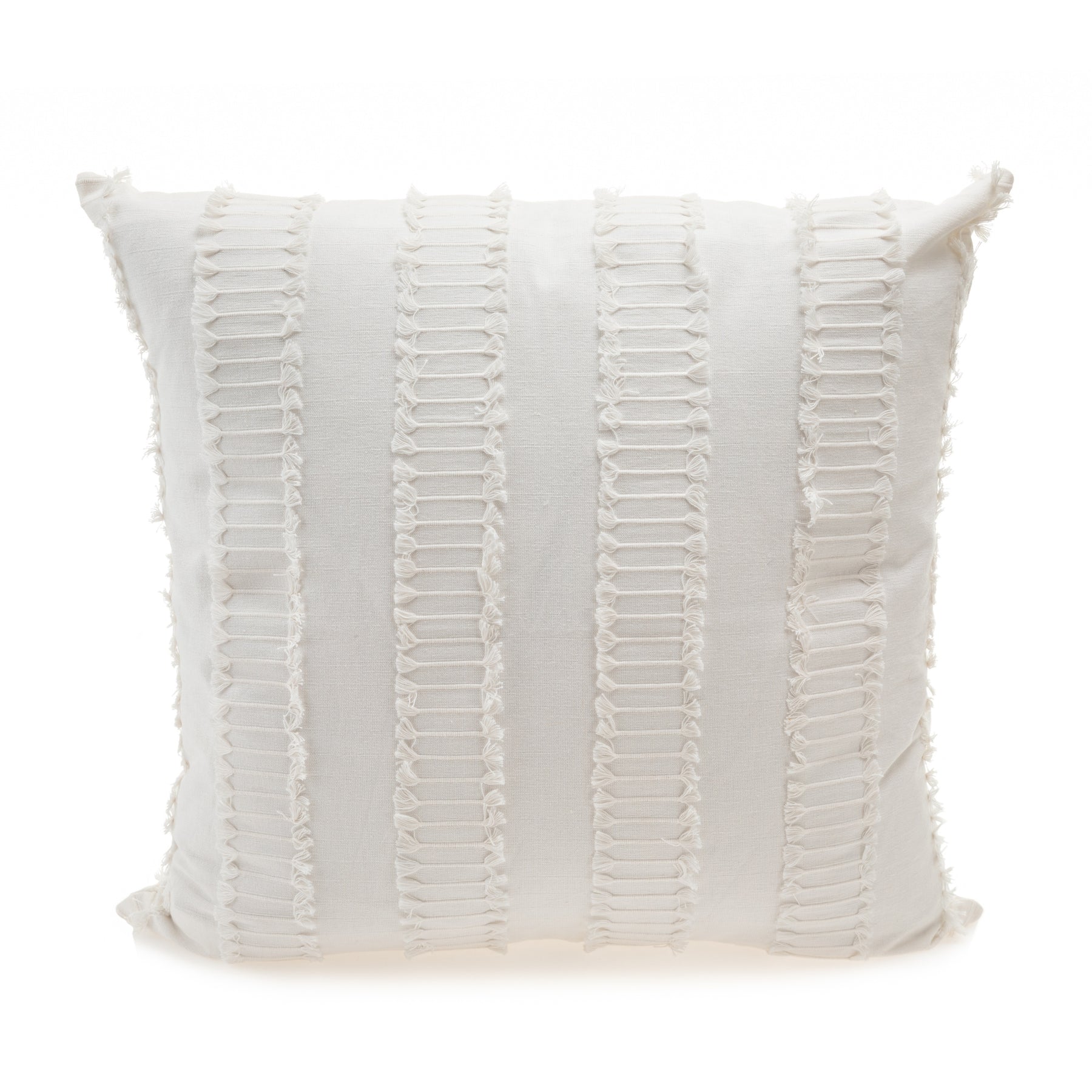 White pillow with textured stitching on a white background
