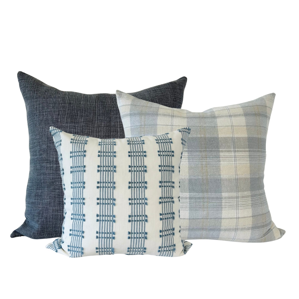 Paired together by our design team, this cohesive pillow set removes the guesswork from mixing patterns and colors, making it effortless to achieve a beautifully curated, designer-approved look. This set blends soothing tones of blue with a harmonious mix of textures and patterns. The result is a refined, layered aesthetic that brings depth, warmth, and relaxed sophistication to your home.