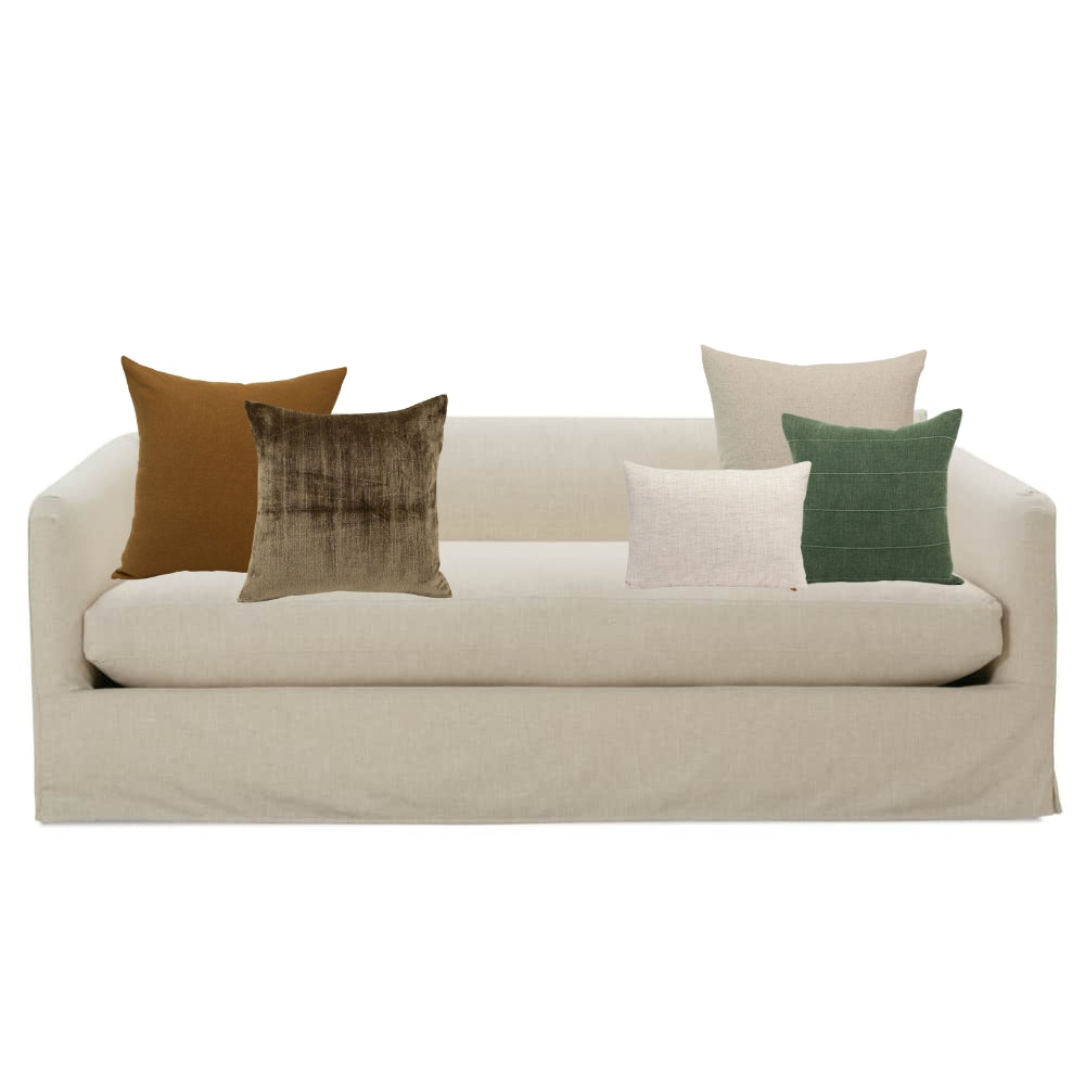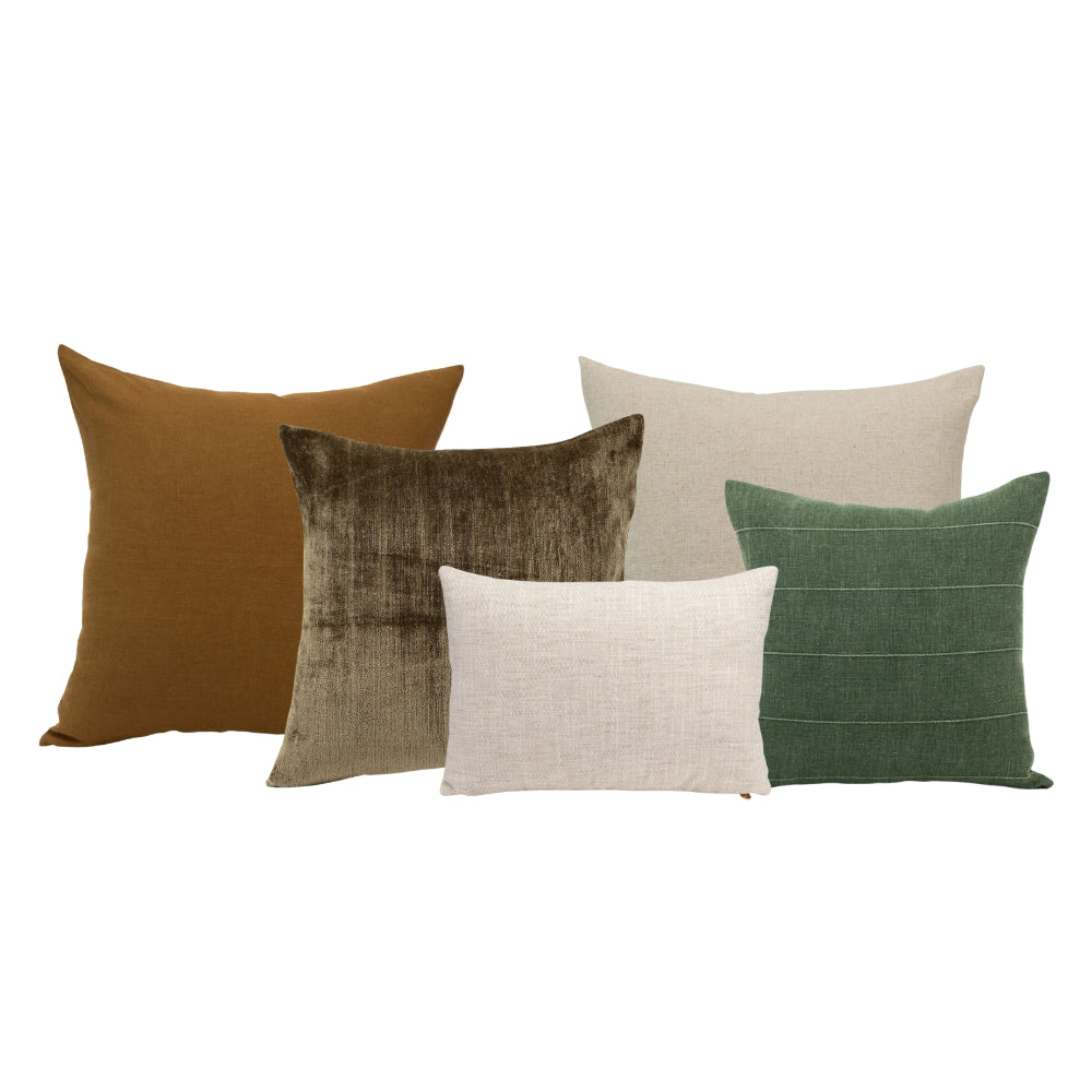 Paired together by our design team, this cohesive pillow set removes the guesswork from mixing patterns and colors, making it effortless to achieve a beautifully curated, designer-approved look. This set blends soothing tones of umber, brown, green and natural linen with a harmonious mix of textures and patterns. The result is a refined, layered aesthetic that brings depth, warmth, and relaxed sophistication to your home.