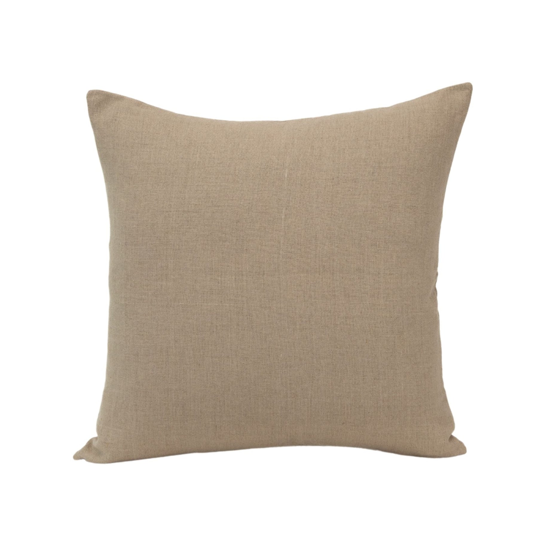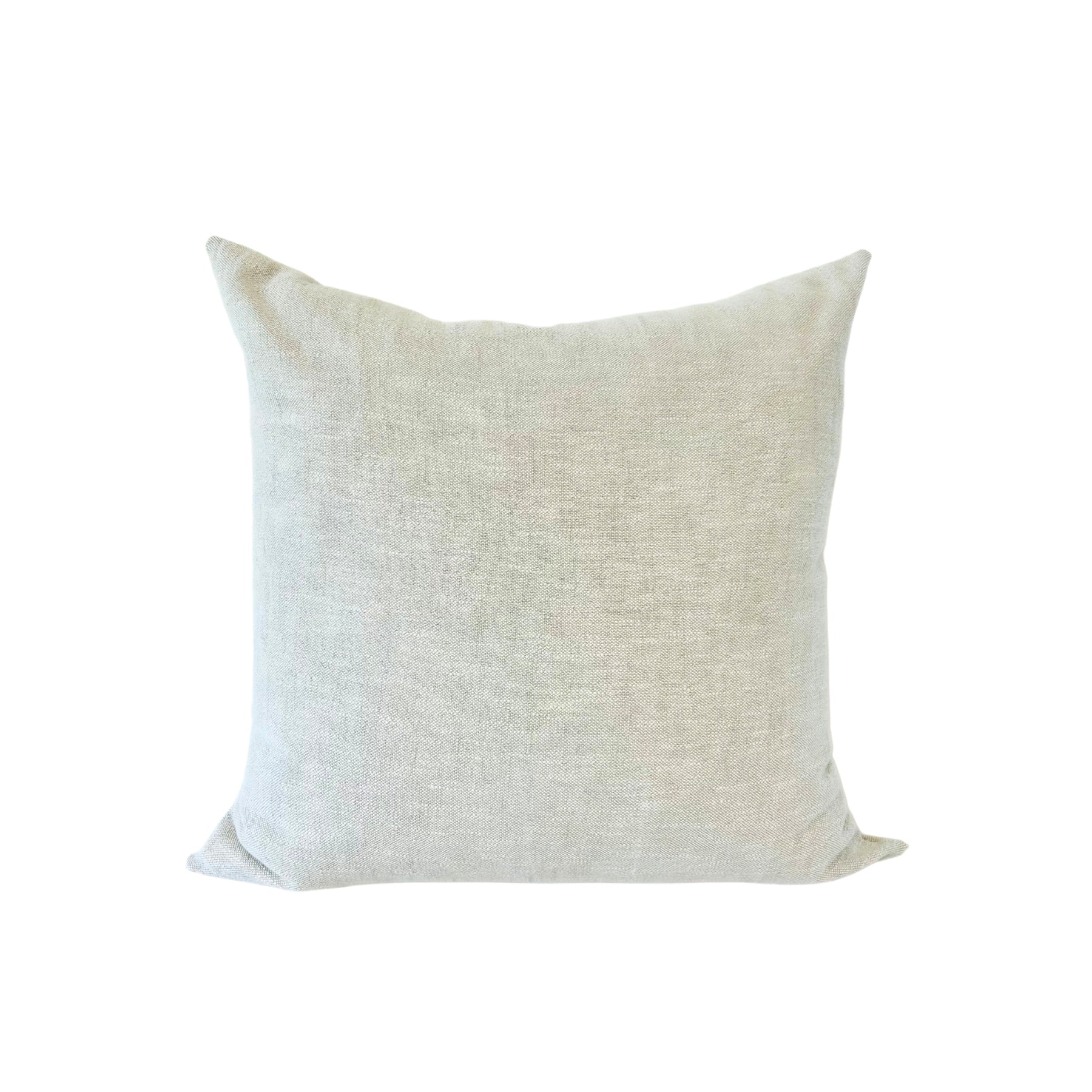 A square-shaped light linen pillow with a neutral color and a subtle texture, displayed against a white background.