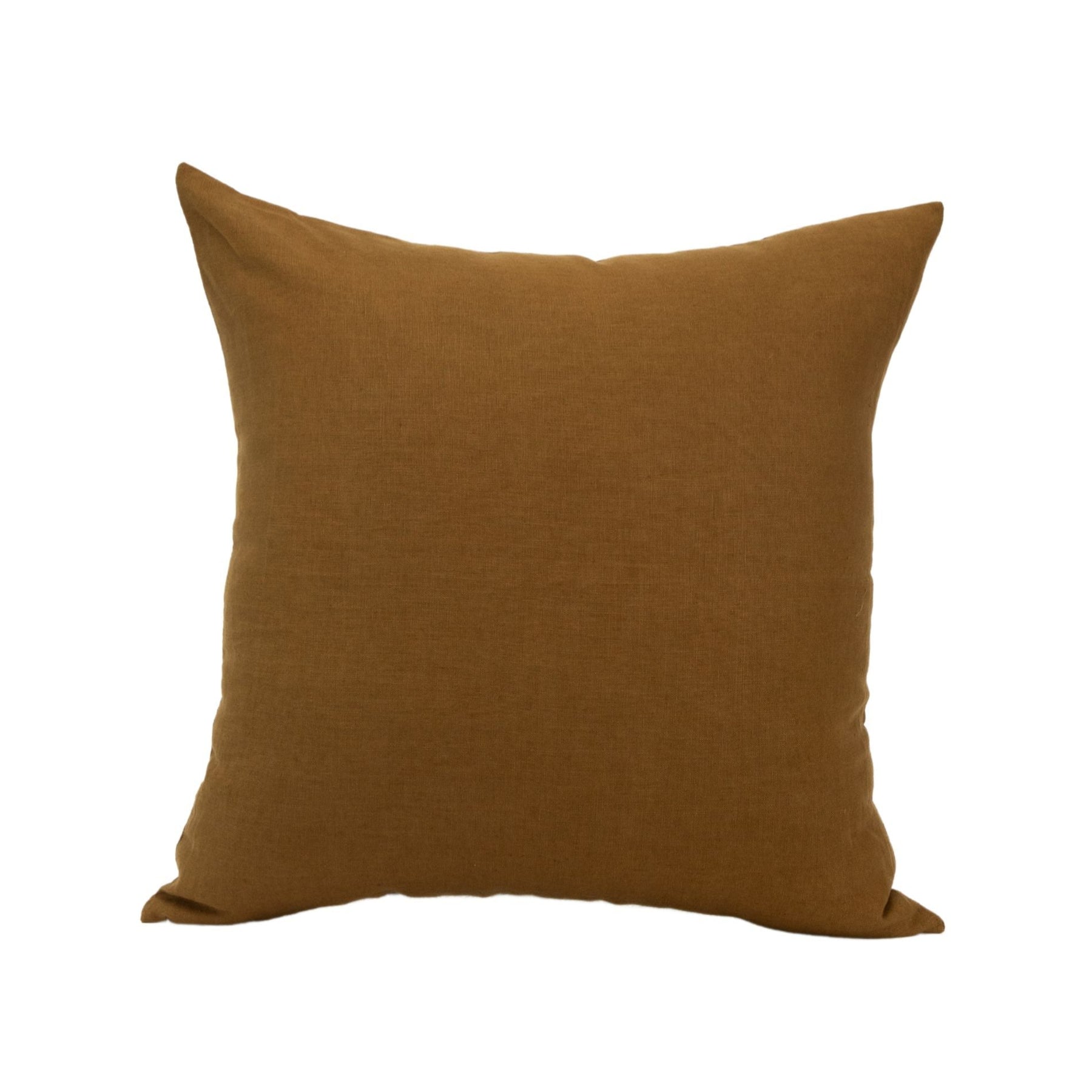 Brown square linen pillow on a white background