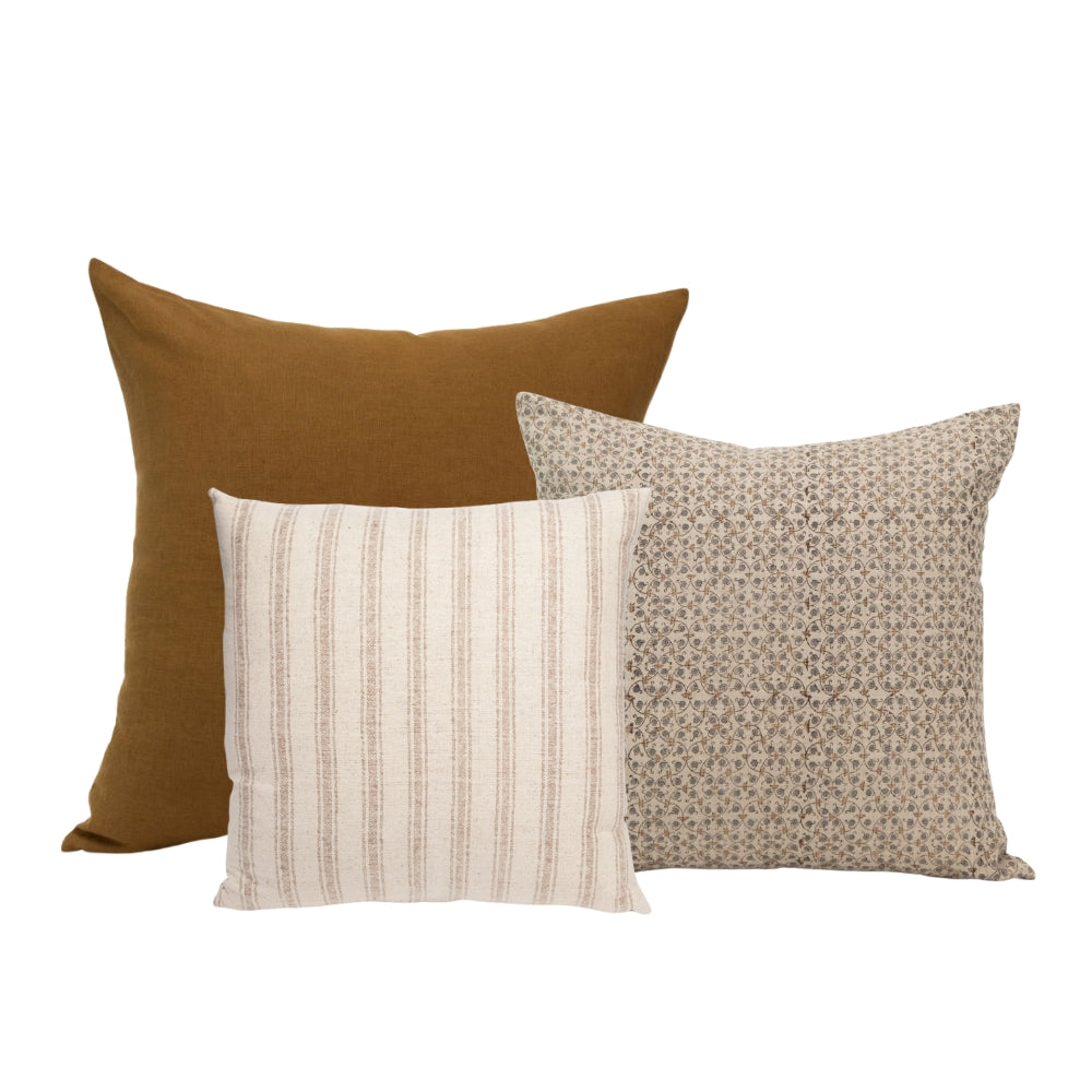 Paired together by our design team, this cohesive pillow set removes the guesswork from mixing patterns and colors, making it effortless to achieve a beautifully curated, designer-approved look. This set blends soothing tones of umber and natural beige with a harmonious mix of textures and patterns. The result is a refined, layered aesthetic that brings depth, warmth, and relaxed sophistication to your home.
