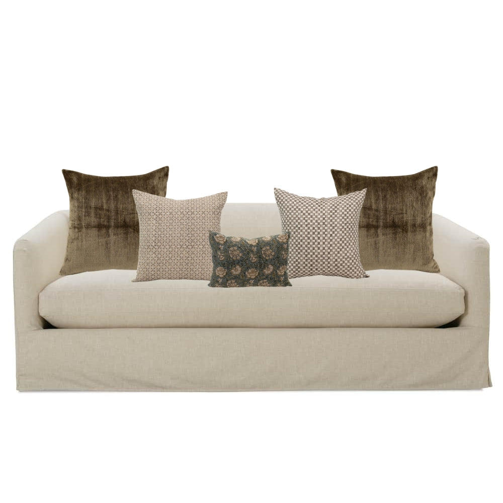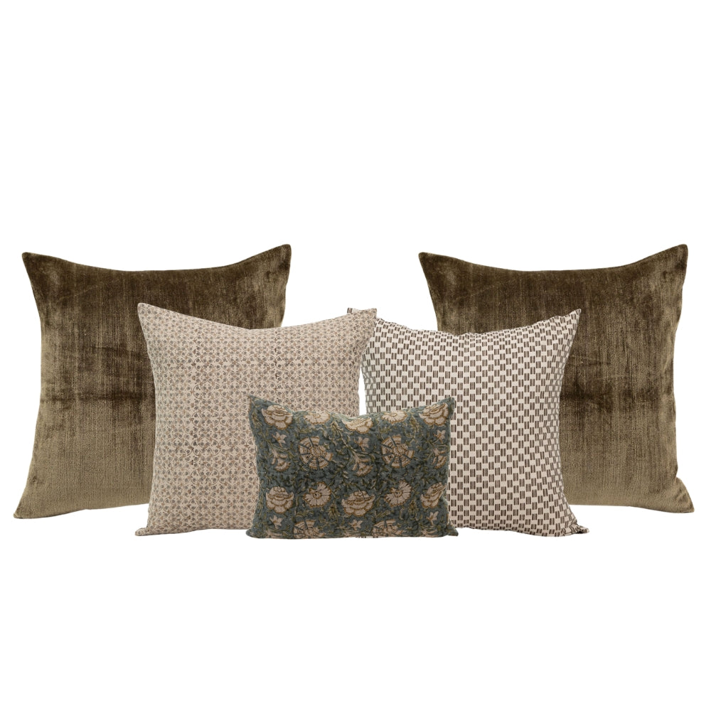 Paired together by our design team, this cohesive pillow set removes the guesswork from mixing patterns and colors, making it effortless to achieve a beautifully curated, designer-approved look. This set blends soothing tones of olives, teals and browns with a harmonious mix of textures and patterns. The result is a refined, layered aesthetic that brings depth, warmth, and relaxed sophistication to your home.