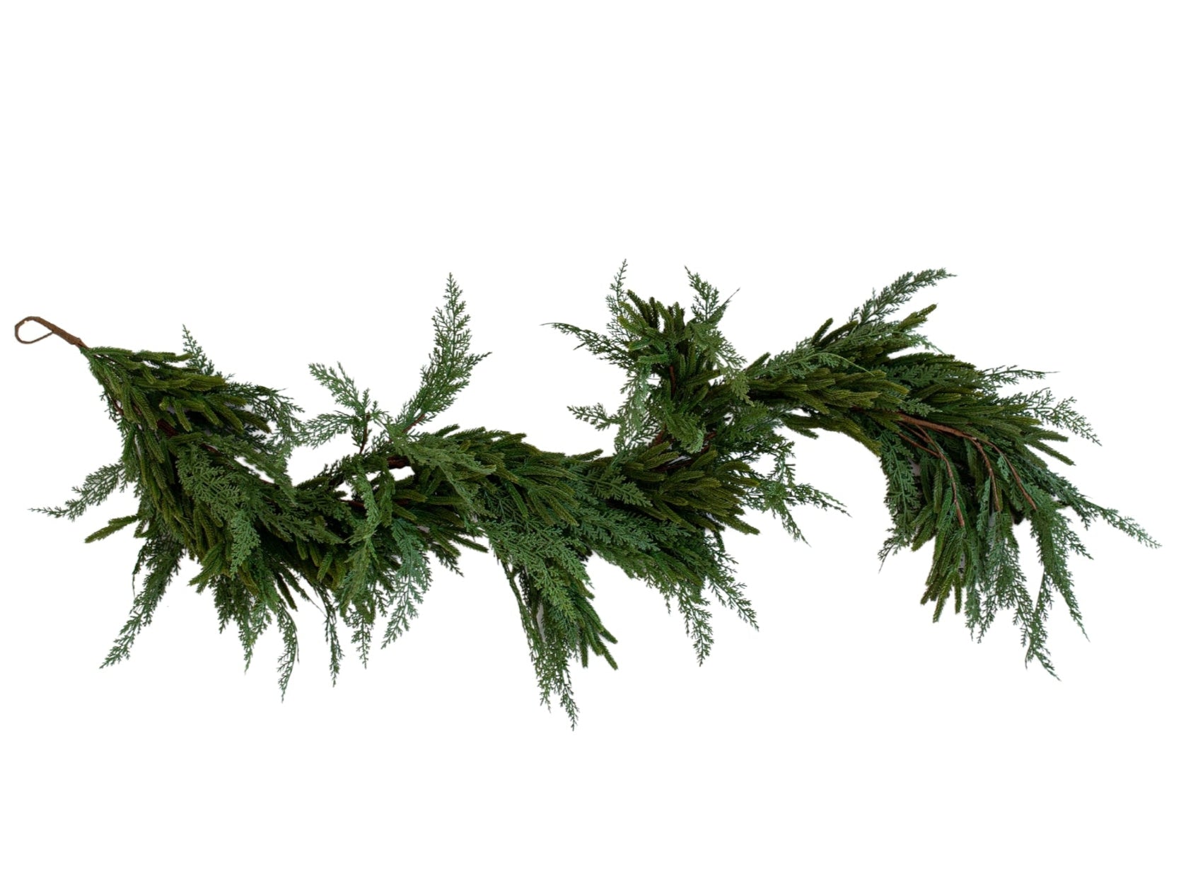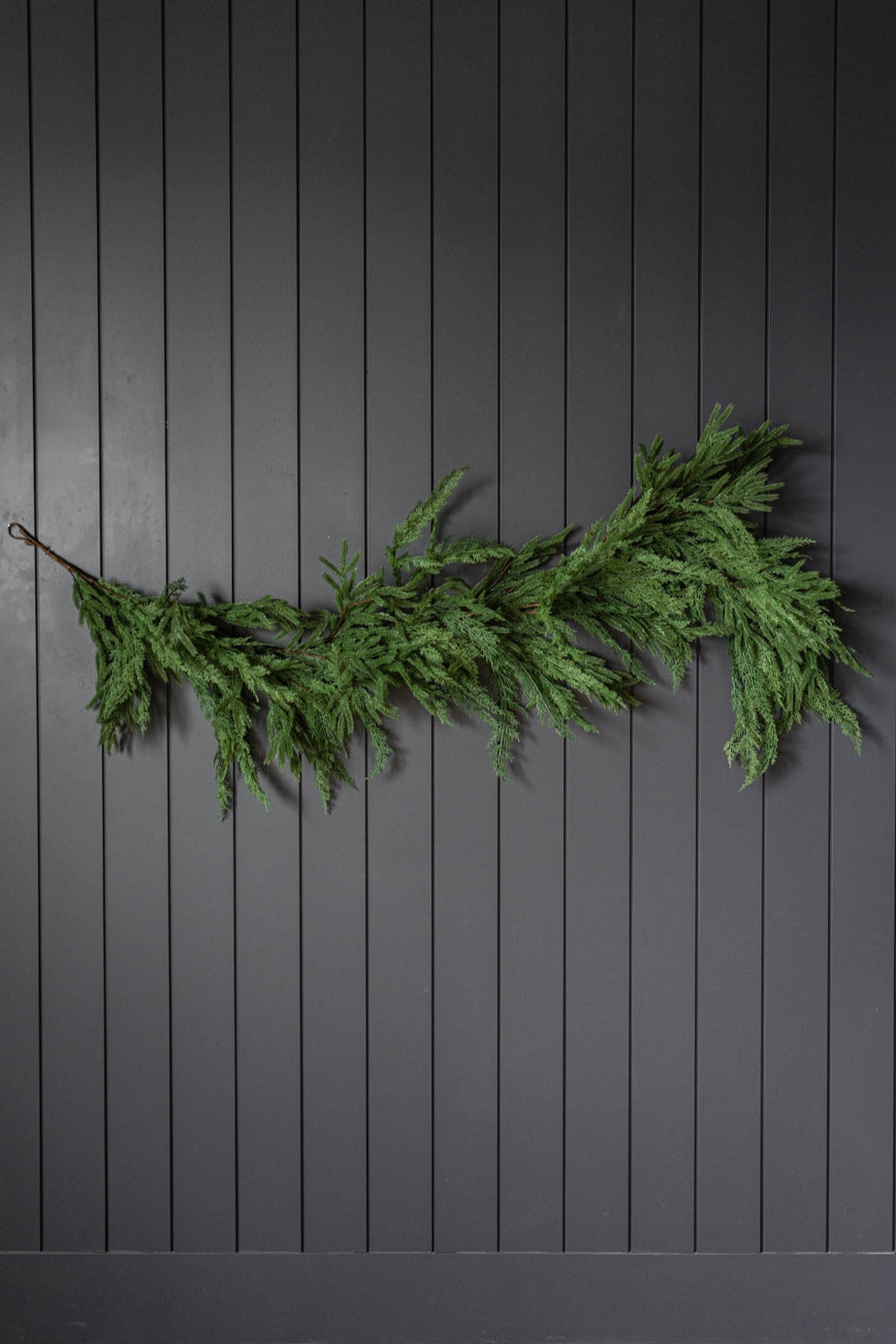 Bring effortless holiday elegance into your home with our 6 foot Norfolk & Cypress Garland. Lush and full, it’s designed to capture the beauty of Christmas in an impactful yet timeless way. Drape it over stair railings, style it across mantles and tables, or frame your front entrance for a welcoming touch. Indoors or out, this garland layers natural texture and festive charm wherever you place it.
