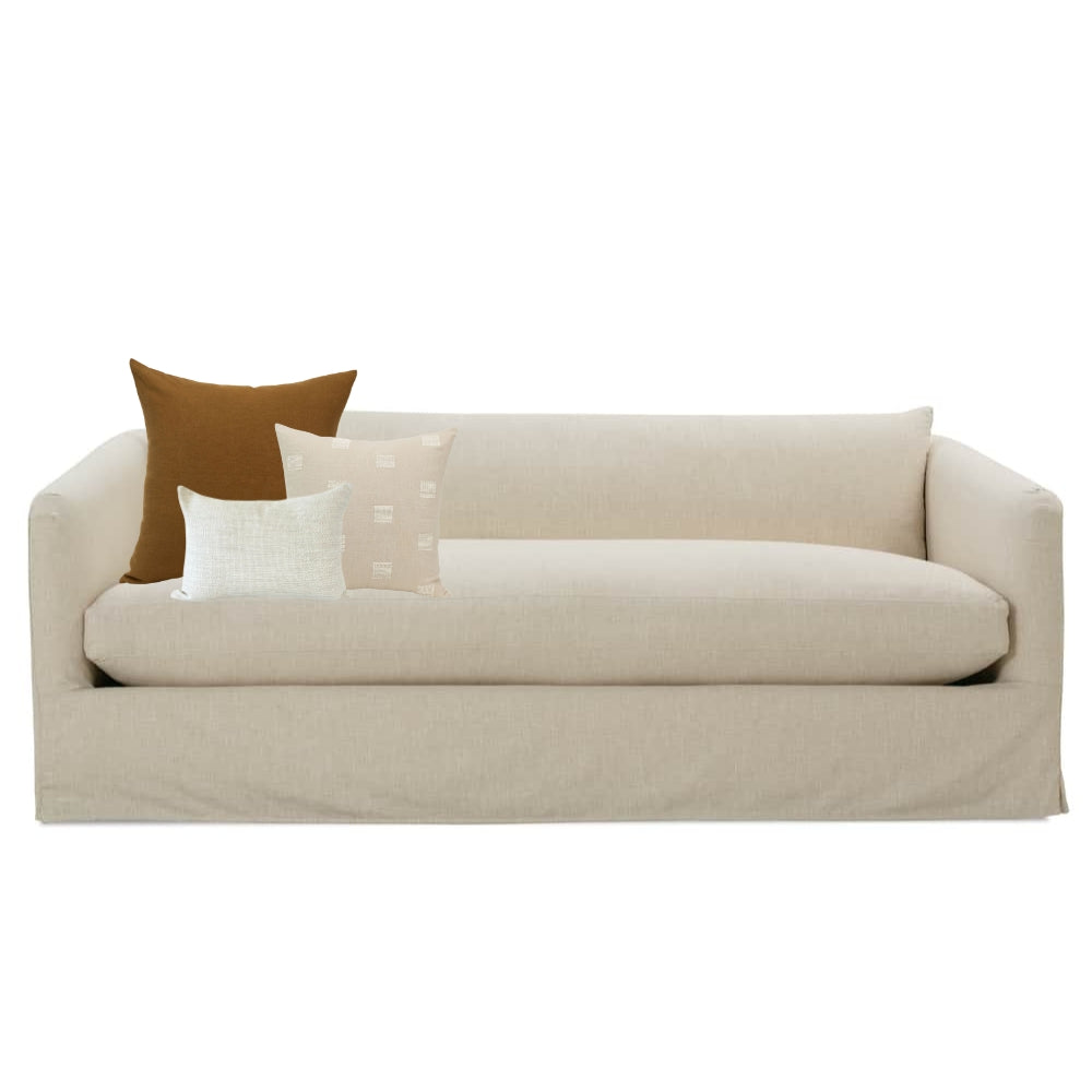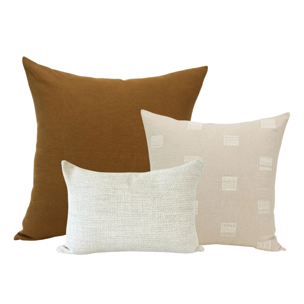 Paired together by our design team, this cohesive pillow set removes the guesswork from mixing patterns and colors, making it effortless to achieve a beautifully curated, designer-approved look. This set blends soothing tones of umber and natural linen with a harmonious mix of textures and patterns. The result is a refined, layered aesthetic that brings depth, warmth, and relaxed sophistication to your home.